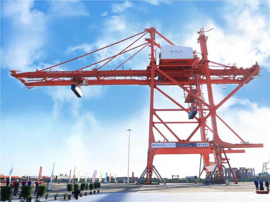 新一代高效穿越式双小车岸桥(简称“新型岸桥”),是华电重工具有完全自主知识产权的新型集装箱装卸设备,已获授权专利106项,其中发明22项。新型岸桥采用了穿越式、高速化、节能、自动化等创新性技术,效率提升50%,并实现起升节能20%。有利于降低港口与海运物流运输成本,大幅提升码头岸线利用率,提高岸线资源综合利用效率,助力交通强国战略。