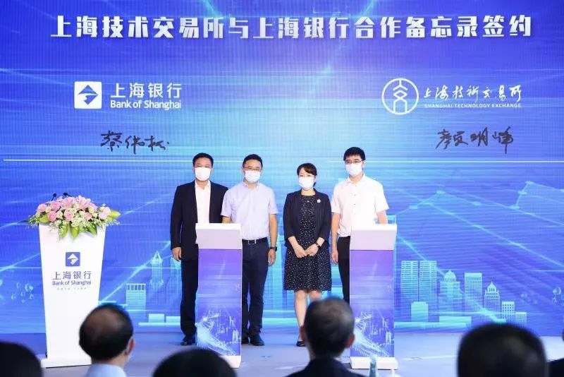 当日,在上海国有资产监督管理委员会创新发展处处长丁宇飞、上海银保监局普惠处副处长赵名惠、上海市科技创业中心副主任黄丽宏三位领导的共同见证下,上海技术交易所总裁颜明峰与上海银行总行营业部总经理蔡伟松就双方共同设计的金融产品——上市技易贷签署专项额度100亿元的合作备忘录。以实际行动加强科技型企业特色产品开发与合作,重视企业科技属性和技术交易额度,运用创新模式来完善科创金融服务体系,为科技企业提供更好的服务和搭建更优质的平台。