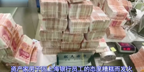 10月18日,日媒跟踪报道:因不满上海银行员工服务差,(中国)资产家怒取大量现金。