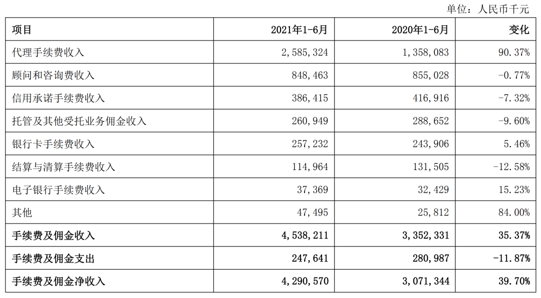 《全球财说》发现,其实该行手续费及佣金收入增长快大概率是代销基金带来的收入增长,上半年该行实现代理手续费收入25.85亿元,同比增长12.27亿元,增幅90.37%。
