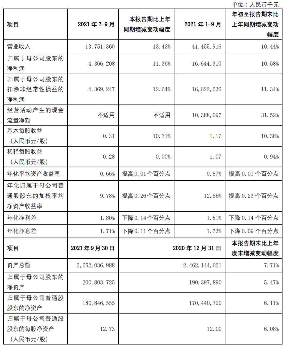 10月27日,上海银行股份有限公司(以下简称“上海银行”)发布2021年第三季度报告。