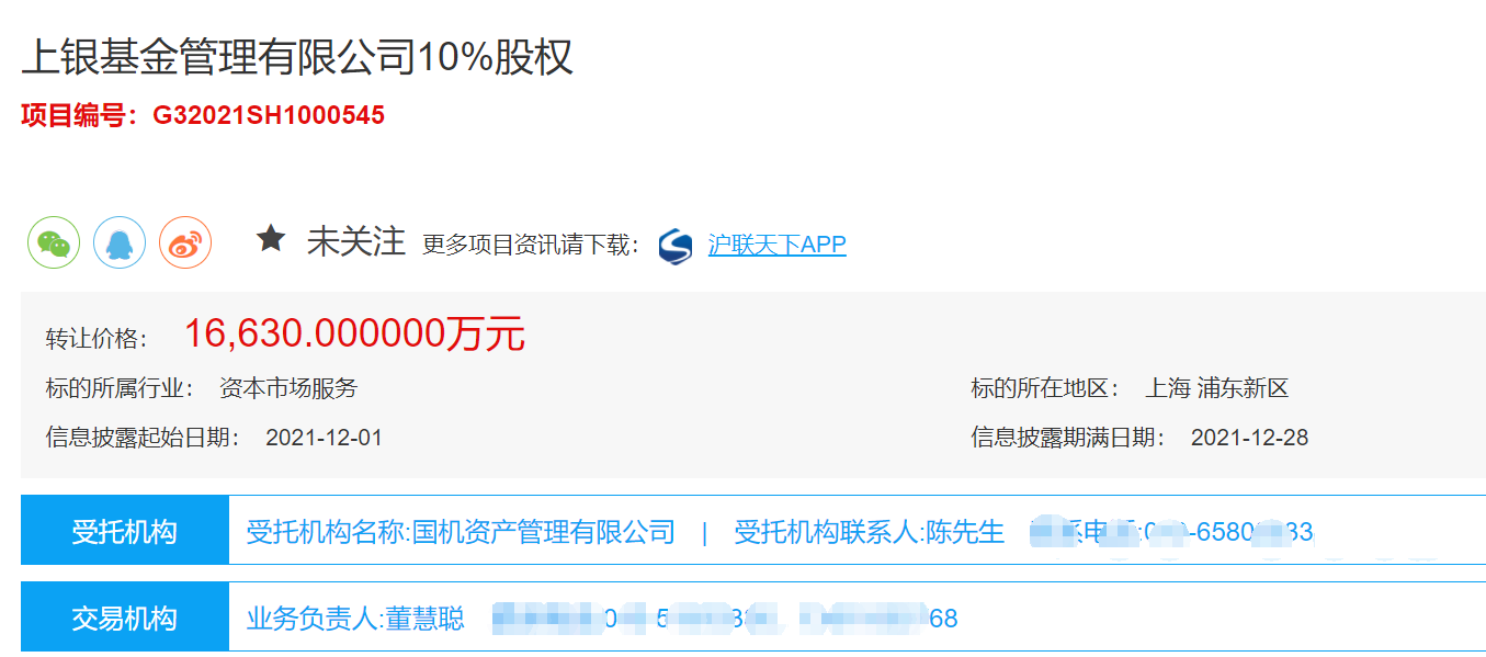 上银基金二股东10%股权挂牌交易,报价1.66亿元