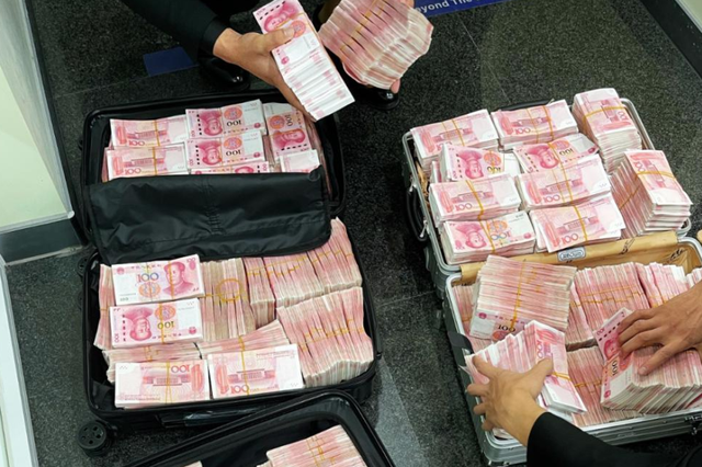 这位网络大V强烈要求把钱全部都取出来,没办法,工作人员只能尊重他的要求,积极帮助客户进行取款服务。让人惊讶的是,这个银行里都没有1万元的捆钱材料,都是用10万元一捆进行绑定。