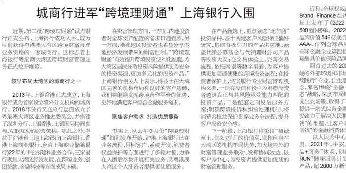 城商行进军“跨境理财通” 上海银行入围
