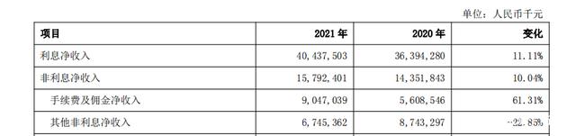 值得一提的是,2021年,上海银行的非利息收入157.92亿元,增长14.41亿元,增幅10.04%。其中,实现手续费及佣金净收入90.47亿元,同比增长 34.38 亿元,增幅为61.31%,也就是说,上海银行在有意识加强除利息收入外的其它收入结构,向轻资产模式靠拢。