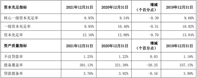 数据显示,截至2021年末,上海银行资本充足率为12.16%,一级资本充足率为9.95%,核心一级资本充足率为8.95%,分别较2020年末下降0.70、0.51、0.39个百分点,三项指标均出现不同程度下滑。