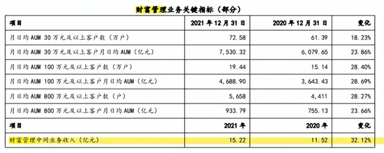 数据显示,截至去年末,该行管理的月日均AUM 30万元、100万元、800万元及以上客户数分别为72.58 万户、19.44万户、5658 户,分别较上年末增长18.23%、28.40%、28.27%;相应的月日均AUM分别为7530.32 亿元、4688.90亿元、933.79亿元,分别较上年末增长23.86%、28.69%、23.66%。