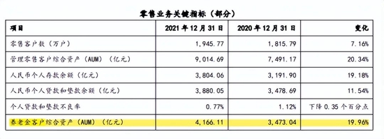 报告期末,该行零售客户1945.77万户,较上年末增长7.16%;管理零售客户综合资产(AUM)9014.69 亿元,较上年末增长20.34%。