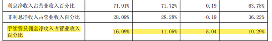 截至去年末,该行实现手续费及佣金净收入90.47亿元,同比增长34.38亿元,增幅61.31%;占营业收入的比重为16.09%,同比提高5.04个百分点。报告期内,上海银行实现营业收入562.30 亿元,同比增54.84亿元,增幅10.81%。而同期的利息净收入虽仍为营业收入的主要贡献方,但占比仅微增0.19个百分点。
