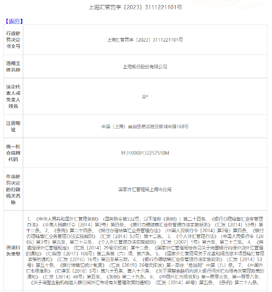 4月28日消息,日前,国家外汇管理局上海分局开出一则罚单,剑指上海银行股份有限公司(以下简称“上海银行”)。