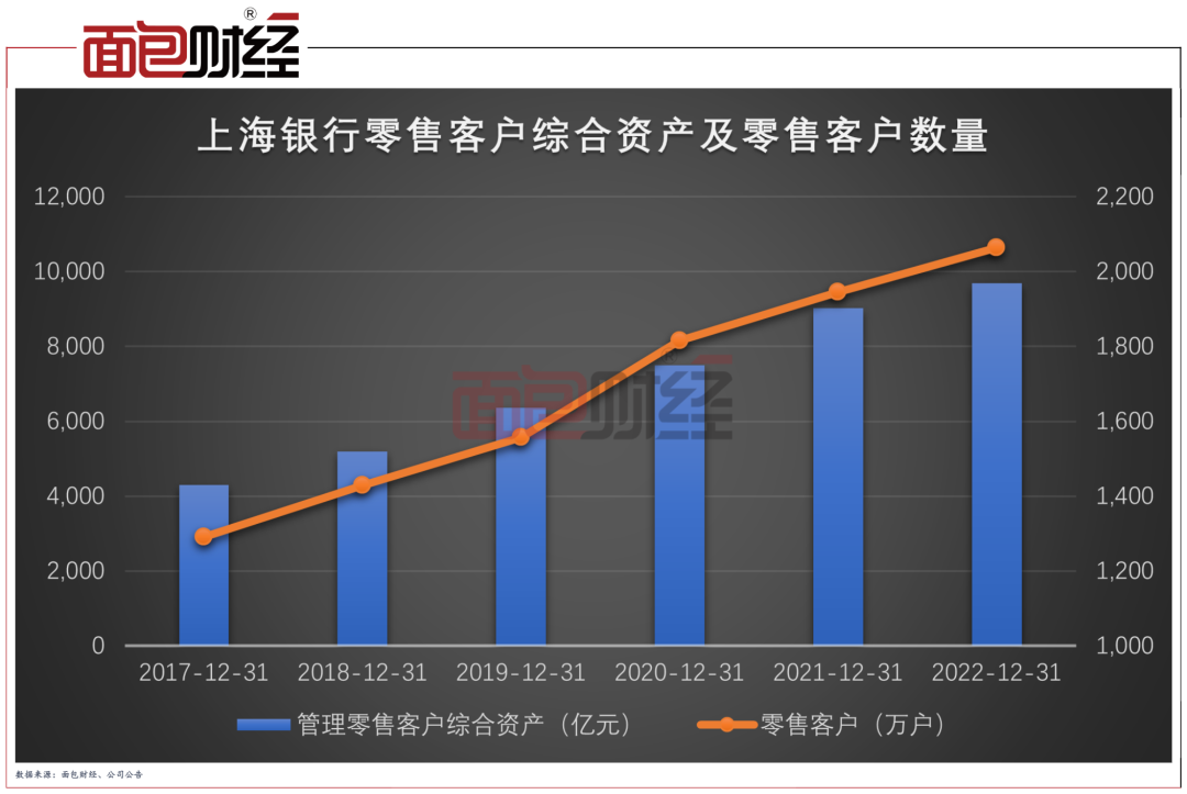 截至2022年末,该行零售客户2064.40万户,较上年末增长6.10%;管理零售客户综合资产(AUM)9681.35亿元,较上年末增长666.66亿元,增幅为7.40%;个人存款余额4896.53亿元,较上年末增长28.7%。
