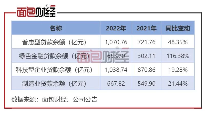 2022年,重点领域贷款规模和客户群体快速增长,超过全行贷款和客户平均增速。年末普惠型贷款、绿色贷款、科技型企业贷款、线上供应链金融贷款余额较上年末分别增长48.35%、116.38%、19.28%、61.43%,核心企业客户数较上年末分别增长133.88%、148.05%、84.65%、58.40%。