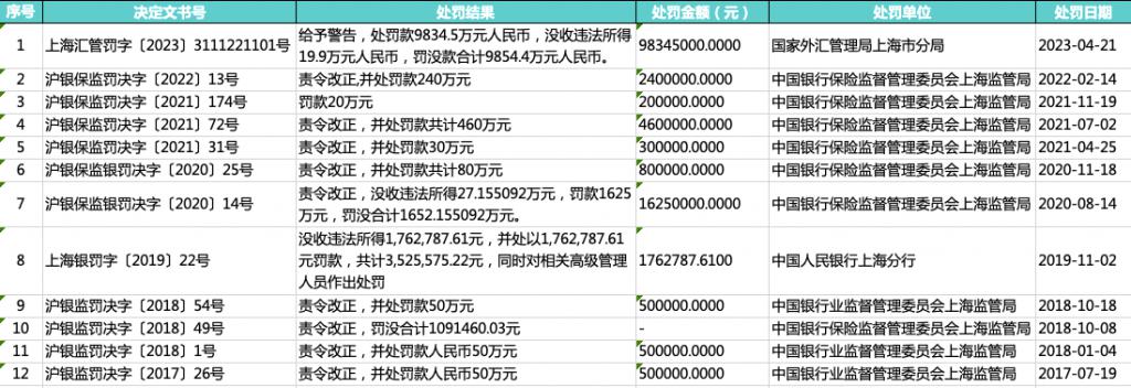 事实上,近年来上海银行已屡次因合规问题被重罚。