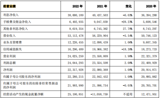2022年年报显示,去年该行实现营业收入531.12亿元,同比下降5.54%,在42家A股银行中位列倒数第五,也是“包邮区”唯一一家增速呈负增长的上市银行。