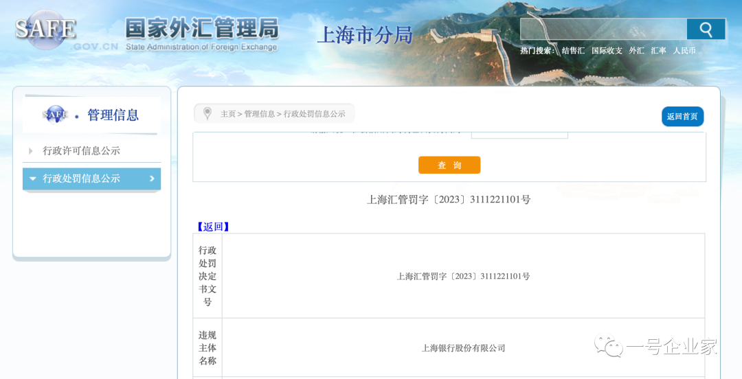 同时被处罚的还有上海银行3名责任人员。时任上海银行深圳分行运营管理部总经理的邓某某,对上海银行“已批准停止营业的分支机构违规办理结售汇业务”的行为负有责任,被罚款7万元。