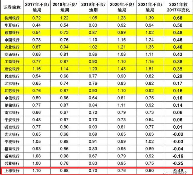 到2021年,上海银行对不良贷款认定的严厉程度排名已经垫底。