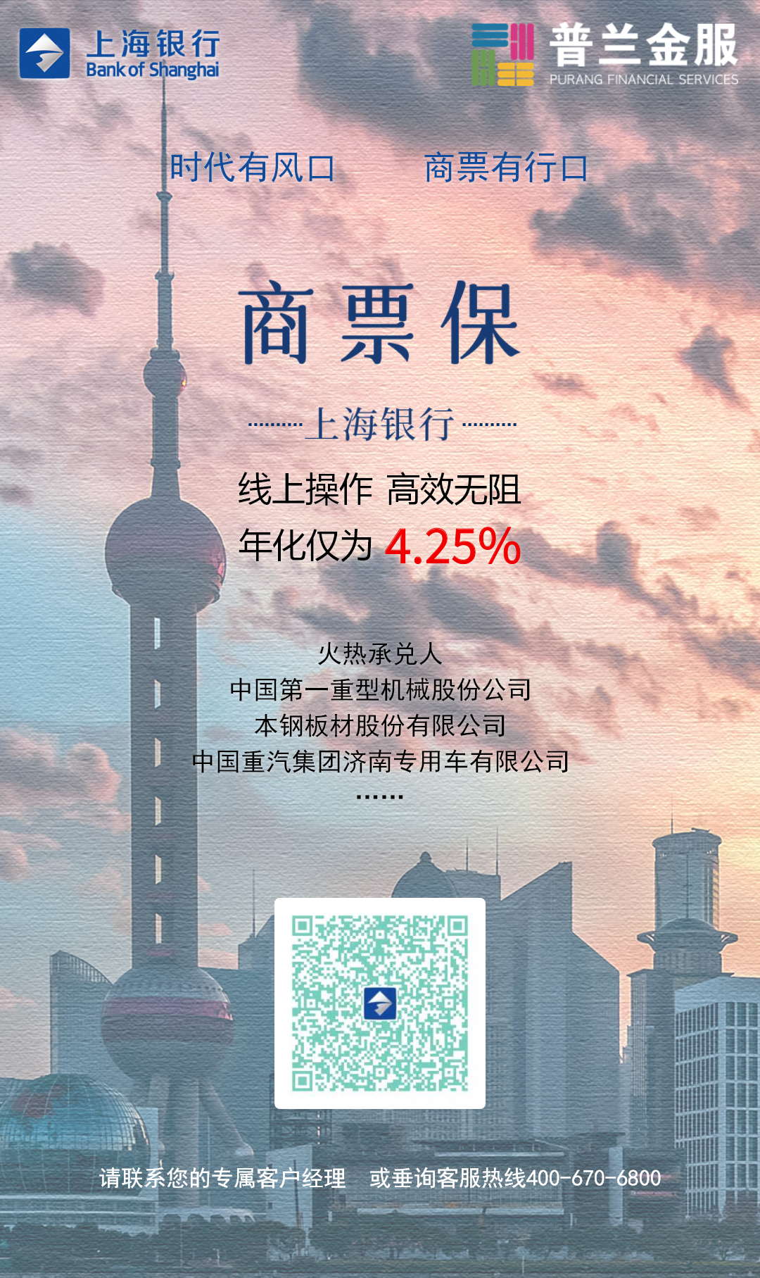 普兰金服联合上海银行以商业承兑汇票质押形式,面向全国符合条件的持票人提供纯线上贷款产品——商票保。依托普兰村领先的科技支撑,符合条件的持票人可线上发起商票贴现询价、申请,银行通过在线审核贸易背景资料,实现快速放款。