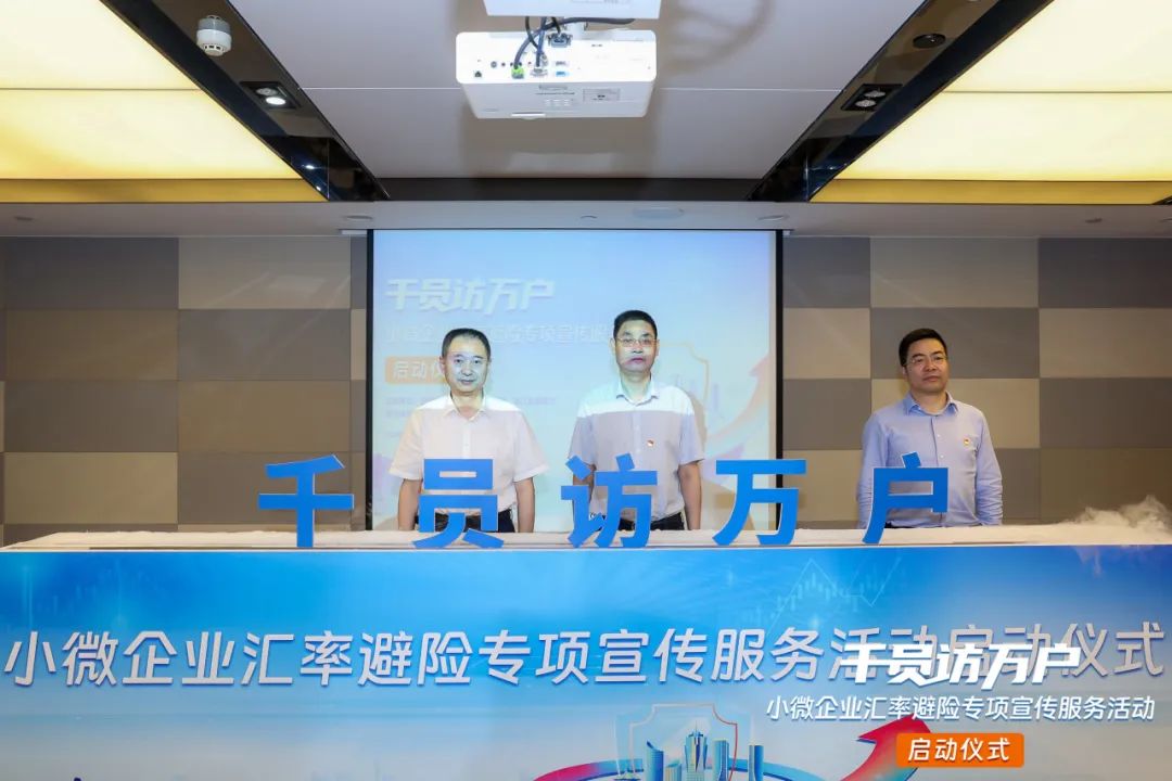 为进一步强化党建业务融合发展,更好地支持小微企业管理汇率风险,助力全省外贸企业拓市场、控风险、降成本,国家外汇管理局浙江省分局、浙江省商务厅在全省联合开展“千员访万户”汇率避险专项宣传服务活动。由全省近5000名外汇联络员在8-11月集中走访小微外贸企业5万家次,针对企业负责人和财务人员集中开展为期3个月的走访对接服务。以党建联建为契机,8月2日,上海银行杭州分行与国家外汇管理局浙江省分局、浙江省商务厅共同举办“千员访万户”小微企业汇率避险专项宣传服务启动仪式,40余家小微企业负责人现场参加启动仪式。