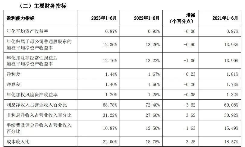 此外,我们可以看到年化平均资产收益率、年化归属于母公司普通股股东的加权平均净资产收益率、年化扣除非经常性损益后加权平均净资产收益率,也都是下滑的。