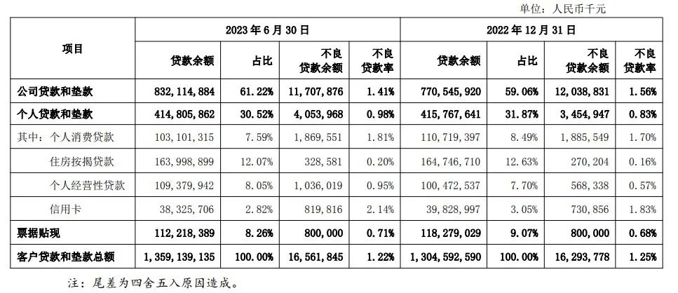 其中,个人经营性贷款不良率较上年末上升0.38个百分点,住房按揭贷款不良率较上年末上升0.04个百分点,信用卡贷款不良率较上年末上升0.31个百分点。