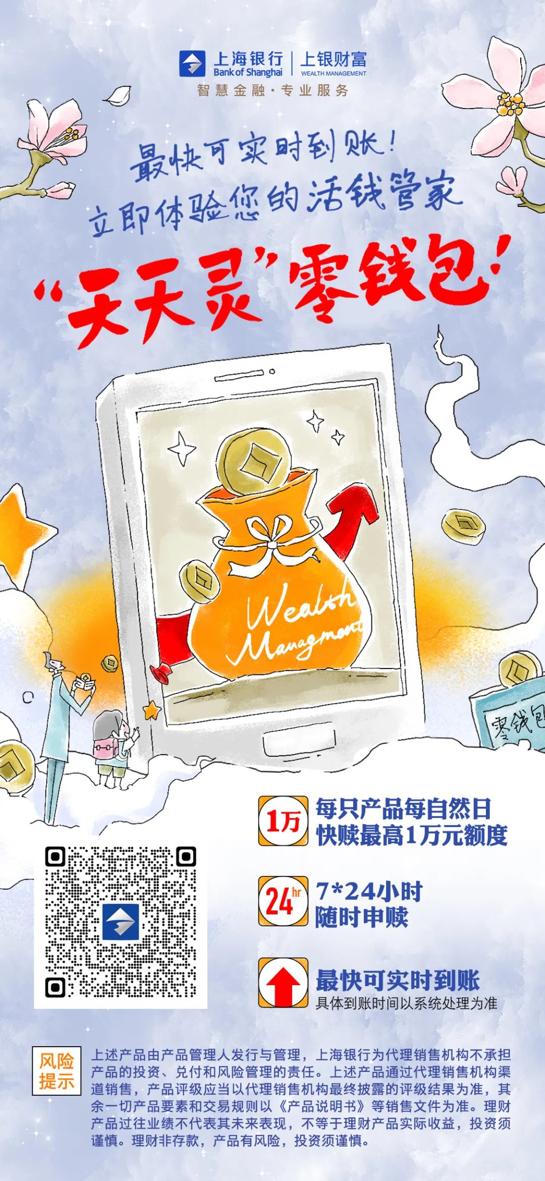 后续,上海银行将持续升级“天天灵”零钱包,引入全市场更多优质理财公司产品,不断扩大零钱包产品范围,为客户提供更便捷、高效、稳健的财富管理服务体验。