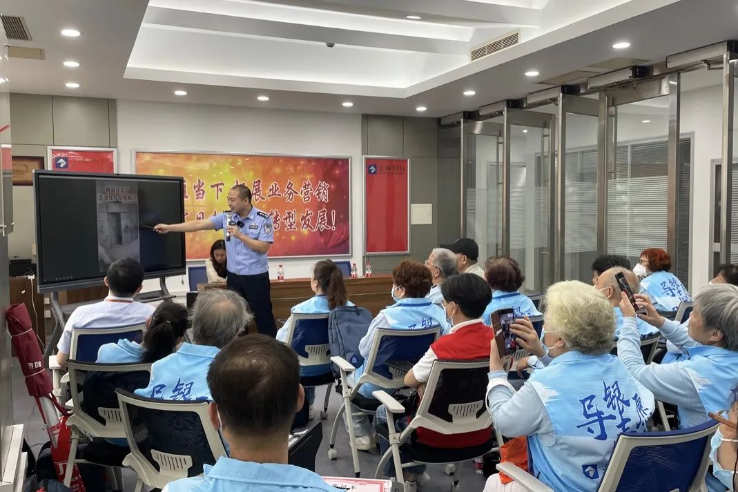 积极开展反诈宣传,守护老年客户的“钱袋子”。创新性组织警银联动,面向全市200余家网点导银志愿者和服务人员开展谨防电信诈骗培训,针对典型、新式的诈骗案例、行骗手段进行详细介绍,让导银志愿者作为老年客户的“养老金融搭子”,发挥“一人带动多人”的反诈宣教辐射和风险识别阻断作用。网点执行落实反诈流程,并于网点厅堂醒目张贴防范电信诈骗相关风险提示。主动对接社区,重点面向老年群体开展反诈主题宣教,真正做到反诈意识深入人心。