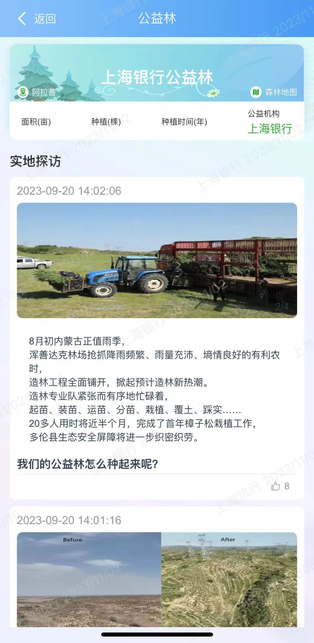 作为主动参与到浑善达克沙地歼灭战的金融机构,上海银行“绿树城银”公益造林项目在内蒙古多伦县浑善达克规模化林场落地,是又一新形式的公益造林模式。