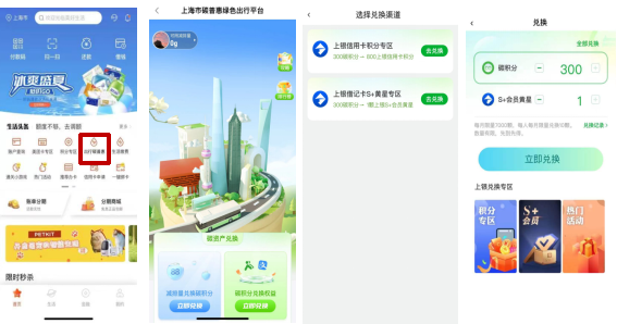 上海银行积极探索与上海市碳普惠体系互联互通,率先参与全市碳普惠平台积分消纳。2023年7月中旬,上海首个绿色出行碳普惠平台上线,上海银行上银美好生活APP同步接入,成为唯一参与积分消纳的金融机构。上线四个月,已实现125万碳积分兑换上银信用卡积分、借记卡S+黄星。11月底,上海银行手机银行即将上线碳普惠专区,通过渠道和产品双管齐下,为客户提供比同类产品更有优势的碳普惠专属产品。
