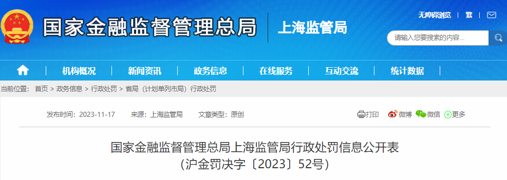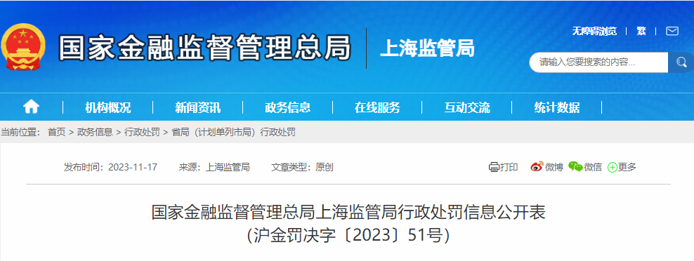 图/国家金融监督管理总局上海监管局官网