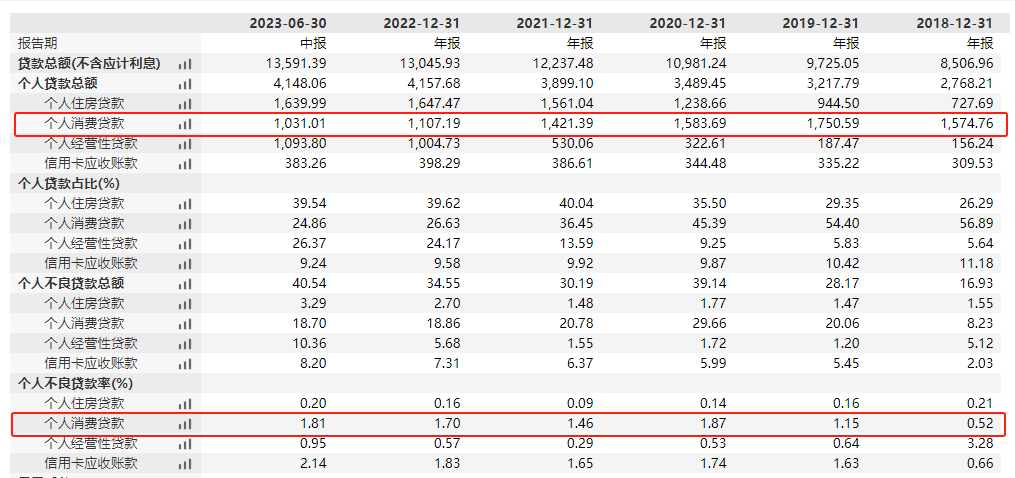 与此同时,有着城商行“消费贷之王”之称的上海银行,当下正在饱尝“消费贷之苦”。个人消费贷一度成为上海银行零售业务的“王牌”,然而不良率攀升的问题也随之而来。压降消费贷规模之后,新的业务增长点短时间内难以构筑。