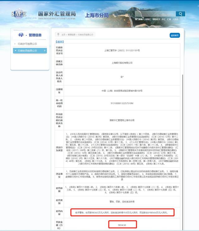 事实上,这并不是上海银行今年首次收到巨额罚单。早在今年4月,上海银行就因在结售汇、外币理财、内保外贷、外汇市场交易领域的部分违法违规行为给予警告,被罚近1亿元。