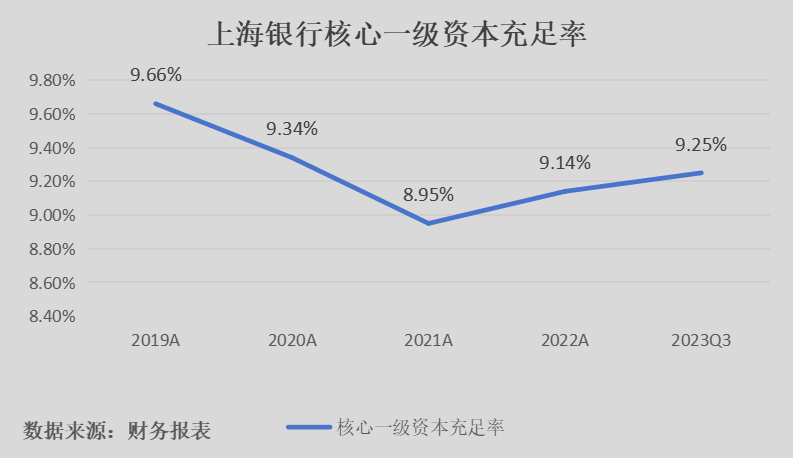 核心一级资本充足率的回升也释放了良好信号,2023年Q3上海银行的核心一级资本充足率为9.25%,远在监管要求的5%之上。