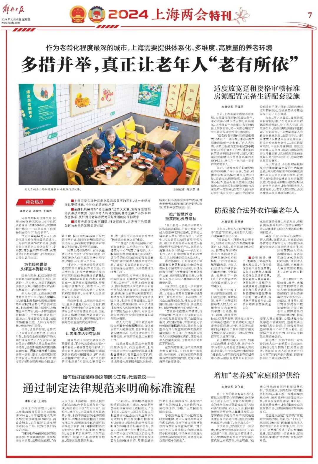 作为中国最早进入人口老龄化且老龄化程度最深的城市,上海如何围绕“9073”格局,多措并举为居家老人提供体系化、多维度、高质量的养老环境,真正让他们“老有所依”,代表委员在会场上展开热议。
