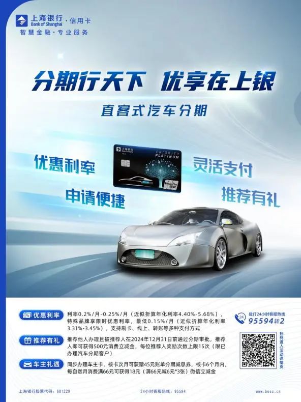 2023年全年,上海银行新能源汽车分期交易额29.3亿元,同比增长56%,服务客户近2万户。2023年10月实施新能源车主信用卡产品升级和推广,同步开展专项营销活动,对活动期间申请直客式分期的新能源车主客户回馈红包权益,截至目前新能源车主卡累计发卡逾6000张。