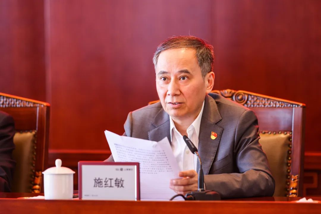 上海银行党委副书记、行长施红敏传达上海市党纪学习教育警示教育会精神。