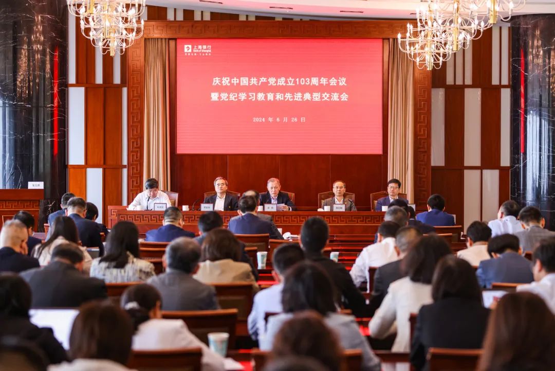 6月26日上午,上海银行举行庆祝中国共产党成立103周年会议暨党纪学习教育和先进典型交流会。
