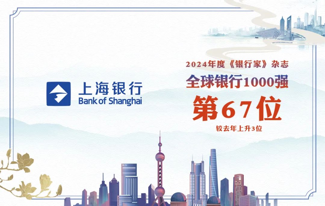 7月10日,英国《银行家》杂志发布“2024年全球银行1000强”榜单,上海银行按一级资本排名位列全球银行第67位,较去年上升3位。