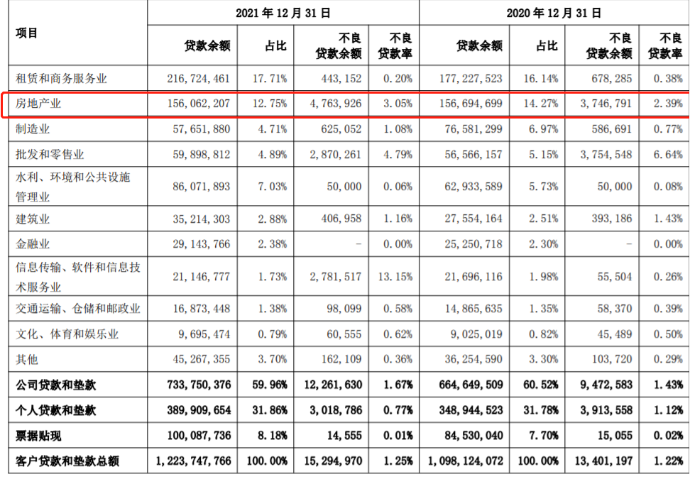 不过,值得一提的是,据上海银行2021年财报显示,截至该年年底,该行的房地产业公司贷不良贷款贷款为47.64亿,不良率3.05%,这与其表述有明显差异。