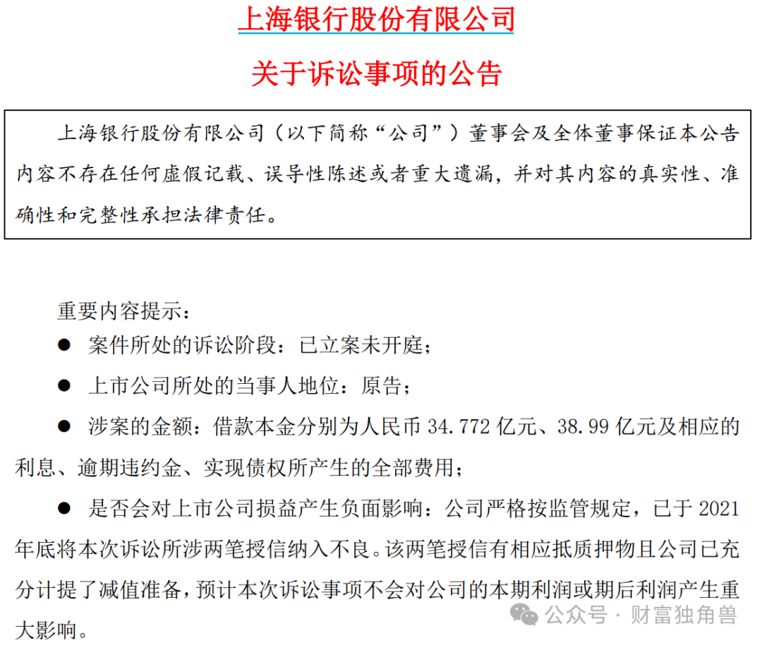 尽管上海银行在公告中声称,“公司严格按监管规定,已于 2021年底将本次诉讼所涉两笔授信纳入不良。该两笔授信有相应抵质押物且公司已充分计提了减值准备,预计本次诉讼事项不会对公司的本期利润或期后利润产生重大影响。”但考虑到“宝能系”债务暴雷持续发酵,上述款项或很难归还,所产生的不良影响难以在短时间内消除。