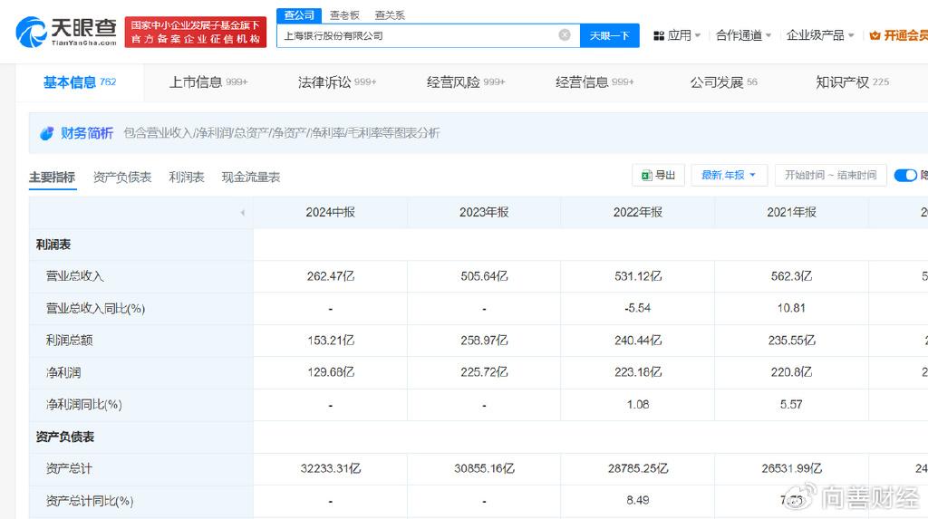 天眼查APP显示:今年上半年,上海银行实现营收262.5亿元,同比下滑0.43%。其中,受净息差进一步收窄影响,利息净收入为161.8亿元,同比下滑10.78%;手续费及佣金净收入21.91亿元,同比下滑23.54%。