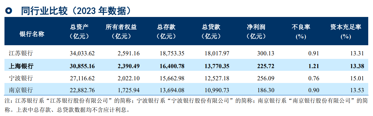 上海银行由于连续两年半营收下滑,净利润止步不前,给了江苏银行、宁波银行反超机会,导致其长三角银行“领头羊”地位不保。目前,就长江三角洲地区的四家主要城商银行来看,上海银行的总资产规模、所有者权益、存款和贷款规模均小于江苏银行排名第二,净利润已被宁波银行和江苏银行反超排名第三,资本充足率低于宁波银行和南京银行排名第三,不良贷款率1.21%不仅四家银行里垫底,就是放在长三角地区15家上市银行中也是排名倒数第一。作为曾经的长三角银行“领头羊”,上海银行如今已全面掉队。