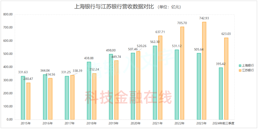 2020年,江苏银行营收520.26亿元,而上海银行营收507.46亿元,已被江苏银行反超。