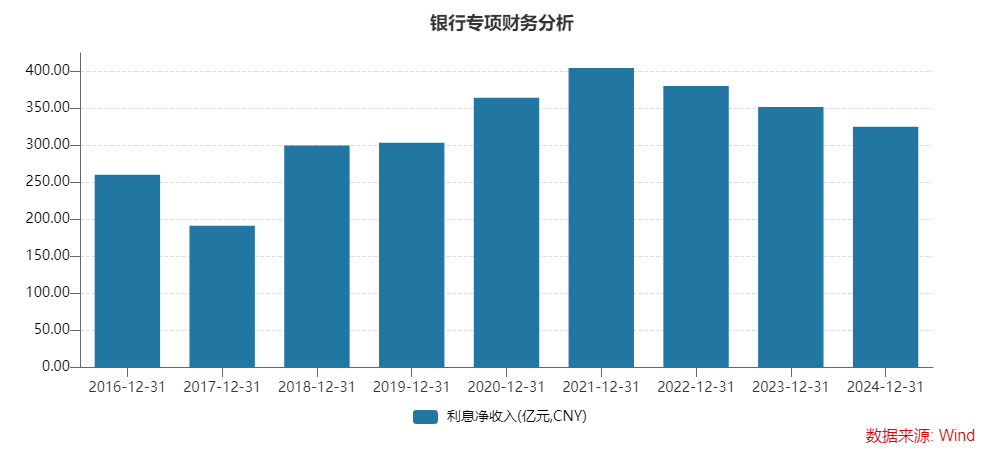 Wind数据显示,2022-2024年,上海银行的利息净收入分别为380亿元、351.64亿元、324.86亿元,分别同比下降6.03%、7.46%、7.62%,降幅速度在加快,一直拖累营收。