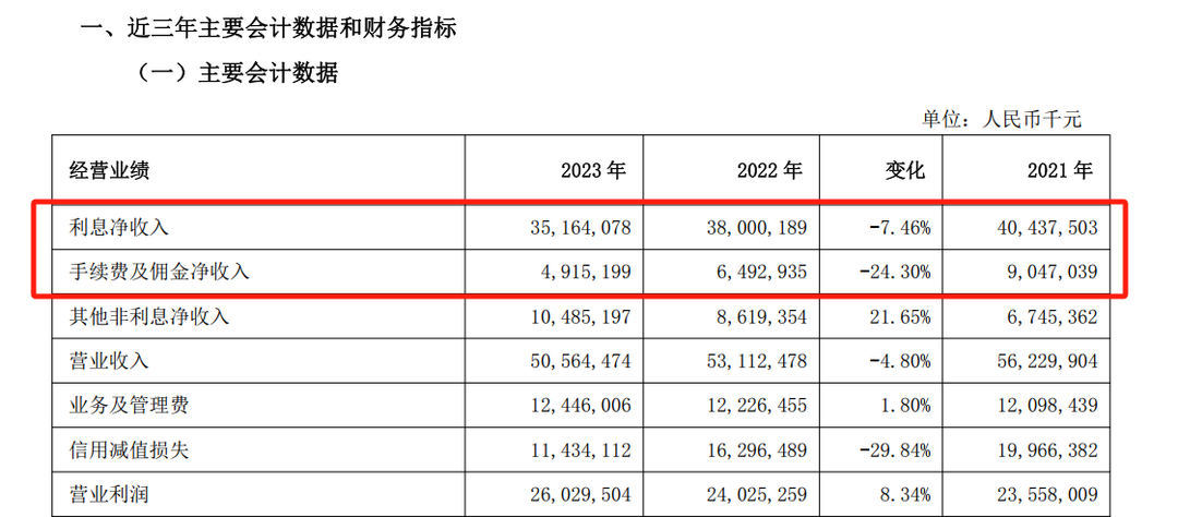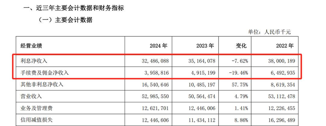 拉长时间线来看,上海银行包括利息净收入、手续费及佣金净收入在内的两大收入板块均连续三年出现同比下降。其中,2022年~2024年,该行利息净收入分别同比下降6.03%、7.46%、7.62%;手续费及佣金净收入分别同比下降28.23%、24.3%、19.46%。总体来看,三年间,上海银行利息净收入减少55.14亿元,手续费及佣金净收入减少25.34亿元。