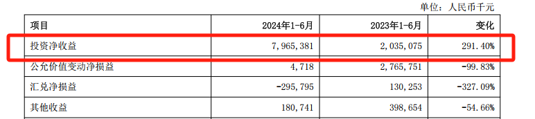 利息净收入同比下降的同时,依赖于投资收益的大幅增长,上海银行的非利息净收入呈现“虚高”状态。2024年,上海银行实现投资收益131.66亿元,同比增幅达94.42%。根据2024半年报,上海银行投资收益同比增幅更是达到291.40%。这一投资策略具有不确定性,2024年,该行投资的上银国际有限公司净亏损11.84亿元。