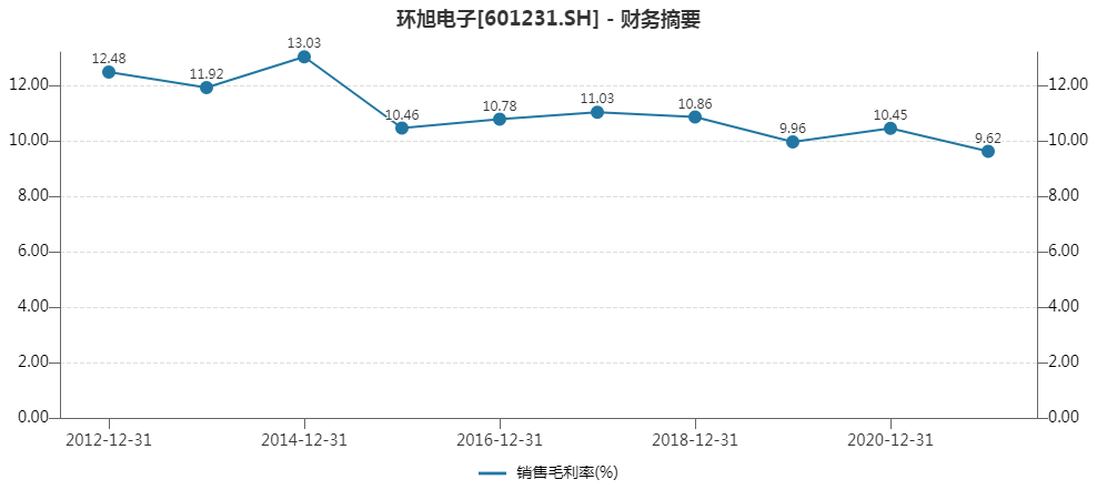 环旭电子大多数业务毛利率有所下滑,公司主营业务毛利率也上年减少0.66个百分点至9.55%。整体而言,该公司毛利率约为9.62%,是该公司2012年A股上市以来的新低,2018年至2020年其毛利率分别是10.86%、9.96%、10.45%。