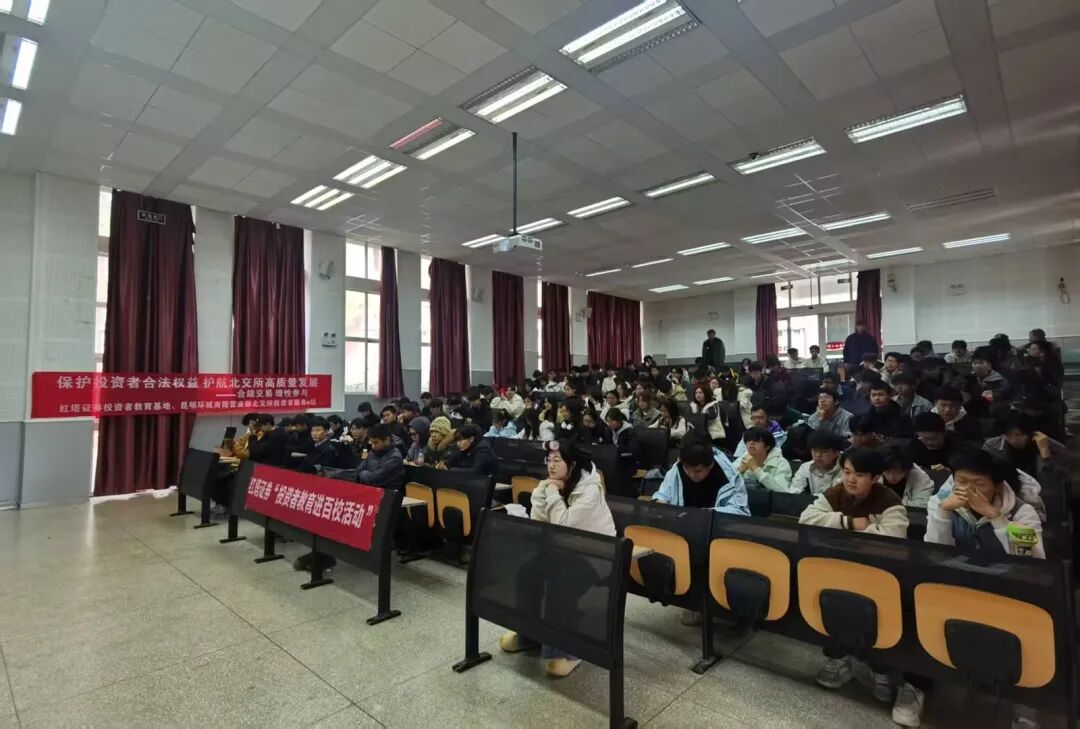 2025年12月18日,红塔证券投教基地联合昆明理工大学举办了一场以“远离金融陷阱、提升金融素养”为主题的宣传活动。本次活动由红塔证券昆明环城南路证券营业部承办,通过线下的方式,共邀请了114位同学参与。