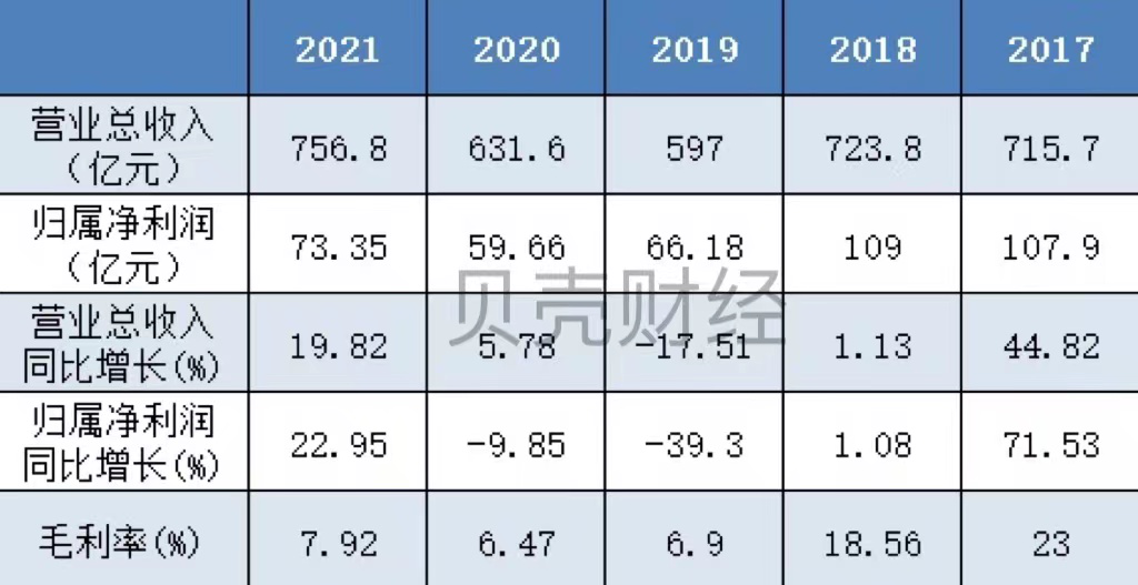 交付方面,2021年,根据中国汽车工业协会数据显示,中国汽车市场销量增速为3.8%,乘用车市场销量增速为6.46%;广汽集团的数据则分别为4.92%、4.97%,整体跑赢大盘,但乘用车的增速略低于市场整体销量增速,乘用车的毛利率也仅有2.67%。