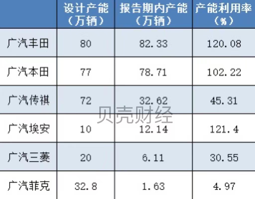 广汽集团旗下主要子公司产能情况制图|白昊天