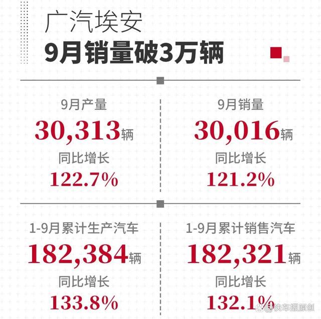 广汽埃安9月产销数据